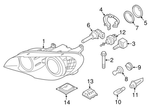 Đèn pha ô tô gồm nhiều bộ phận. Mỗi bộ phận đều quan trọng để đảm bảo ánh sáng đầy đủ và an toàn: